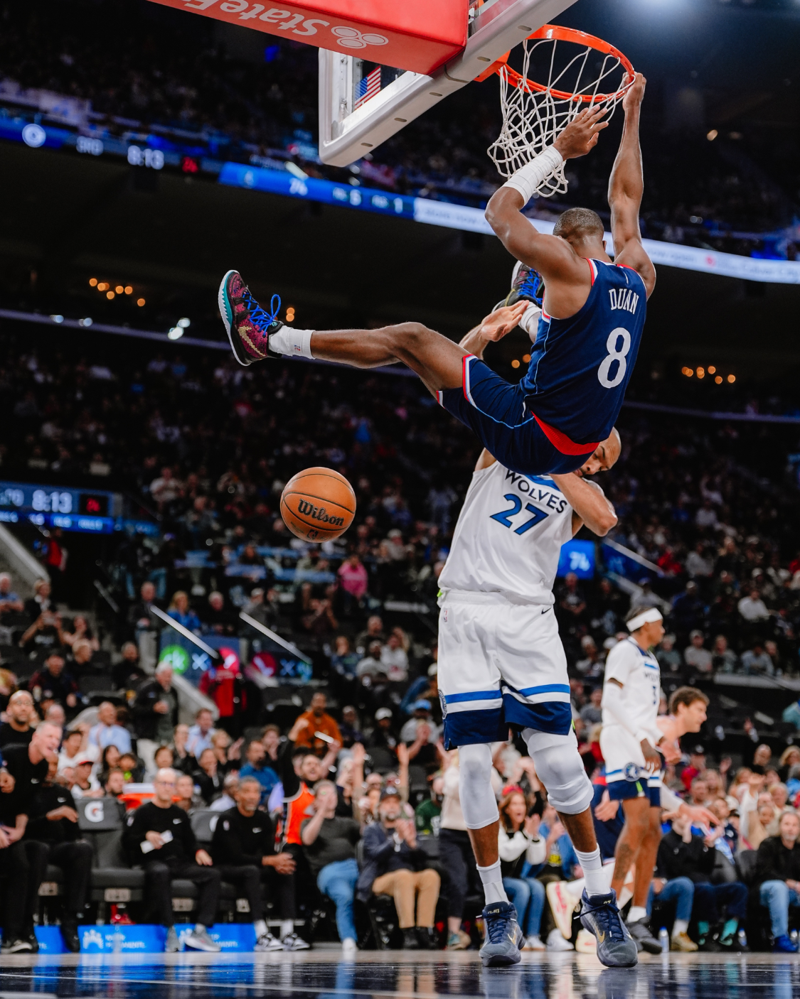森林狼队首发阵容:迪文琴佐、爱德华兹、麦克丹尼尔斯、兰德尔、戈贝尔